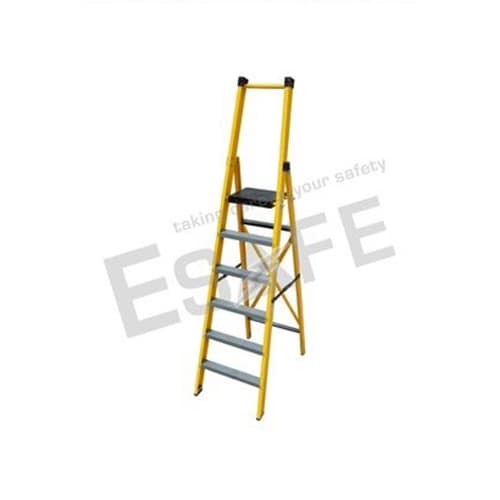 - E-SAFE Fibre Glass Heavy Duty Self Support ‘A’ type Platform step ladder ES-PSL having side runners of fibre glass channel section, 3” wide fibre glass anti skid steps at 300mm center to center on one side.